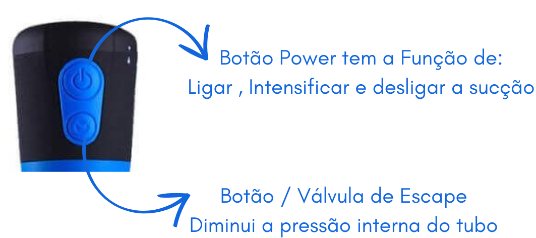 Com um simples toque no botão ''power'' você já inicia o seu exercício e pode intensificar a sucção tocando o botão novamente. Quando sentir que a sucção foi suficiente aperte o botão ''power'' mais uma vez e a sucção irá parar. Pressione o botão abaixo do power e você sentirá a pressão internar do tubo diminuir gradativamente até que seja possível reiniciar o exercício.